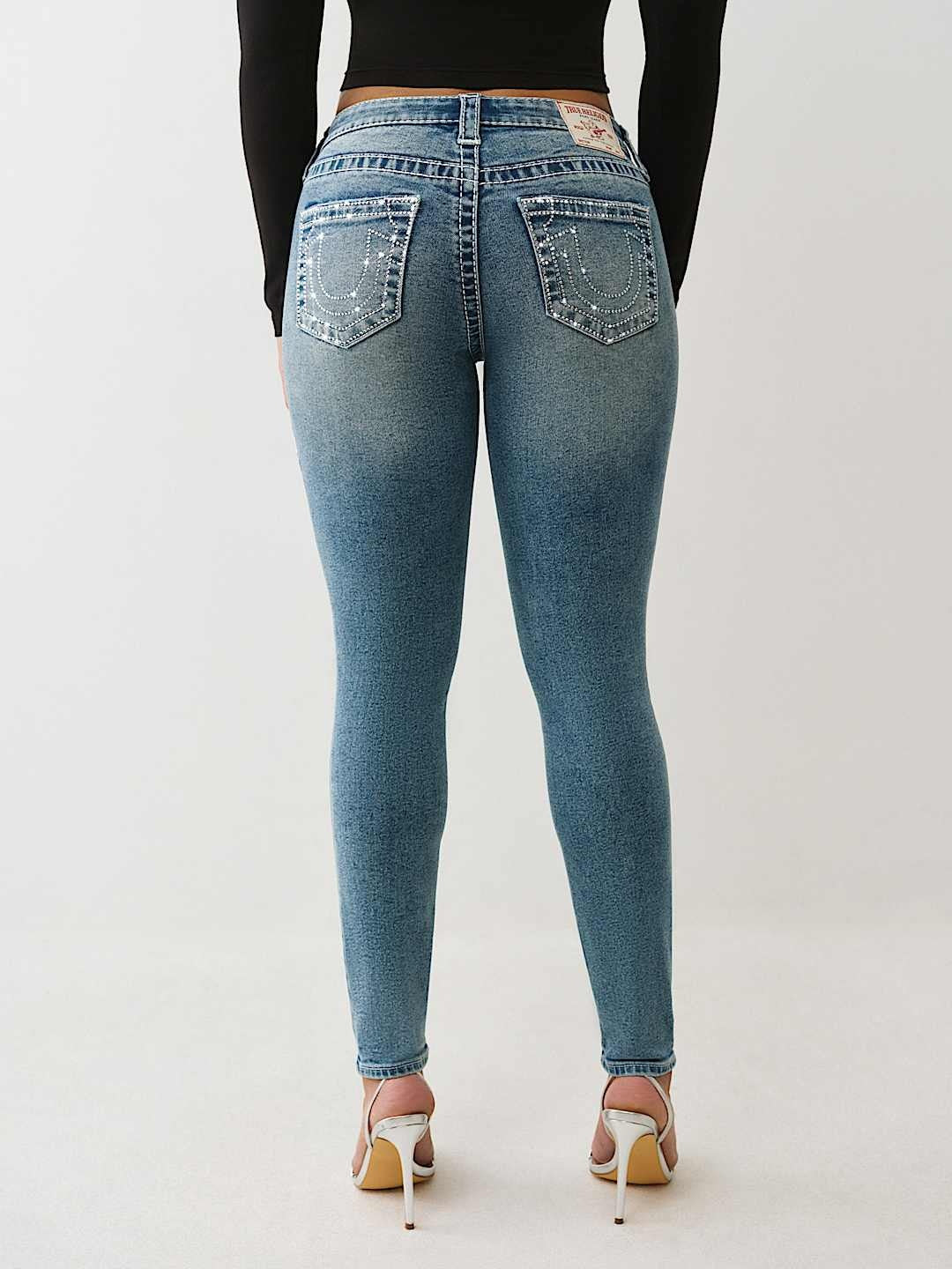 Elevate your denim collection with the True Religion Crystal Jennie Mr Skinny jeans, featuring the iconic Big T design and striking Crystal Flash embellishments. These skinny-fit jeans combine premium craftsmanship with eye-catching crystal detailing that adds a touch of glamour to any outfit. Perfect for those who appreciate bold, statement-making style with authentic True Religion quality. A versatile piece that transitions seamlessly from casual to dressed-up occasions.