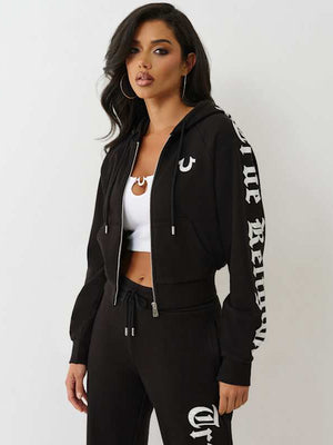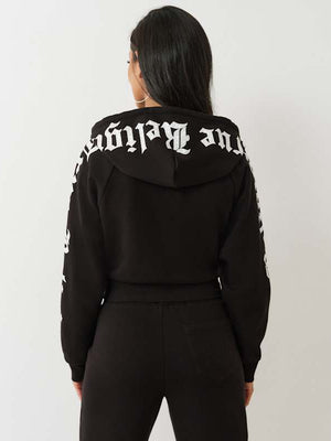 True Religion Crystal Tr Relaxed Zip Hoodie Jet Black