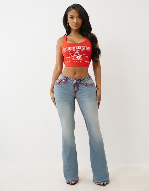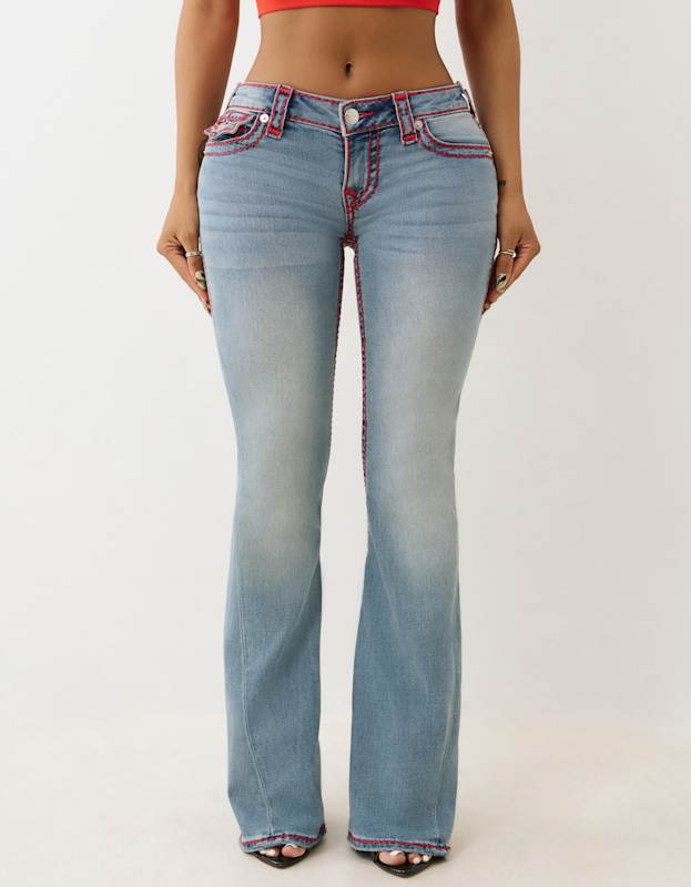 True Religion Joey LR Flare Flap Super T Iconic True Religion craftsmanship meets contemporary edge in this Joey LR Flare silhouette. Featuring signature flap pocket detailing and a super-stretch denim blend, these jeans deliver the perfect balance of premium comfort and timeless style. The flare cut flatters effortlessly while the low-rise waist creates a modern, confident look. Built for those who demand quality without compromise—a wardrobe essential that transcends seasons and trends.