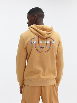 TRUE RELIGION SWEATER PATCH EMBRO HOODIE CARAMEL