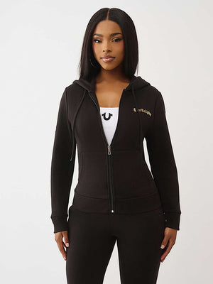 True Religion Hoodie Crystal Relaxed Zip Jet Black
