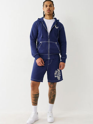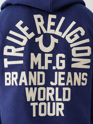 True Religion Big T Slub Zip Up Hoodie Medieval Blue