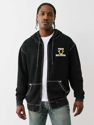 True Religion Hoodie Hs Paint Cinched Big T Zip Up Jet Black