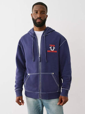 True Religion Big T Slub Zip Up Hoodie Jet Black