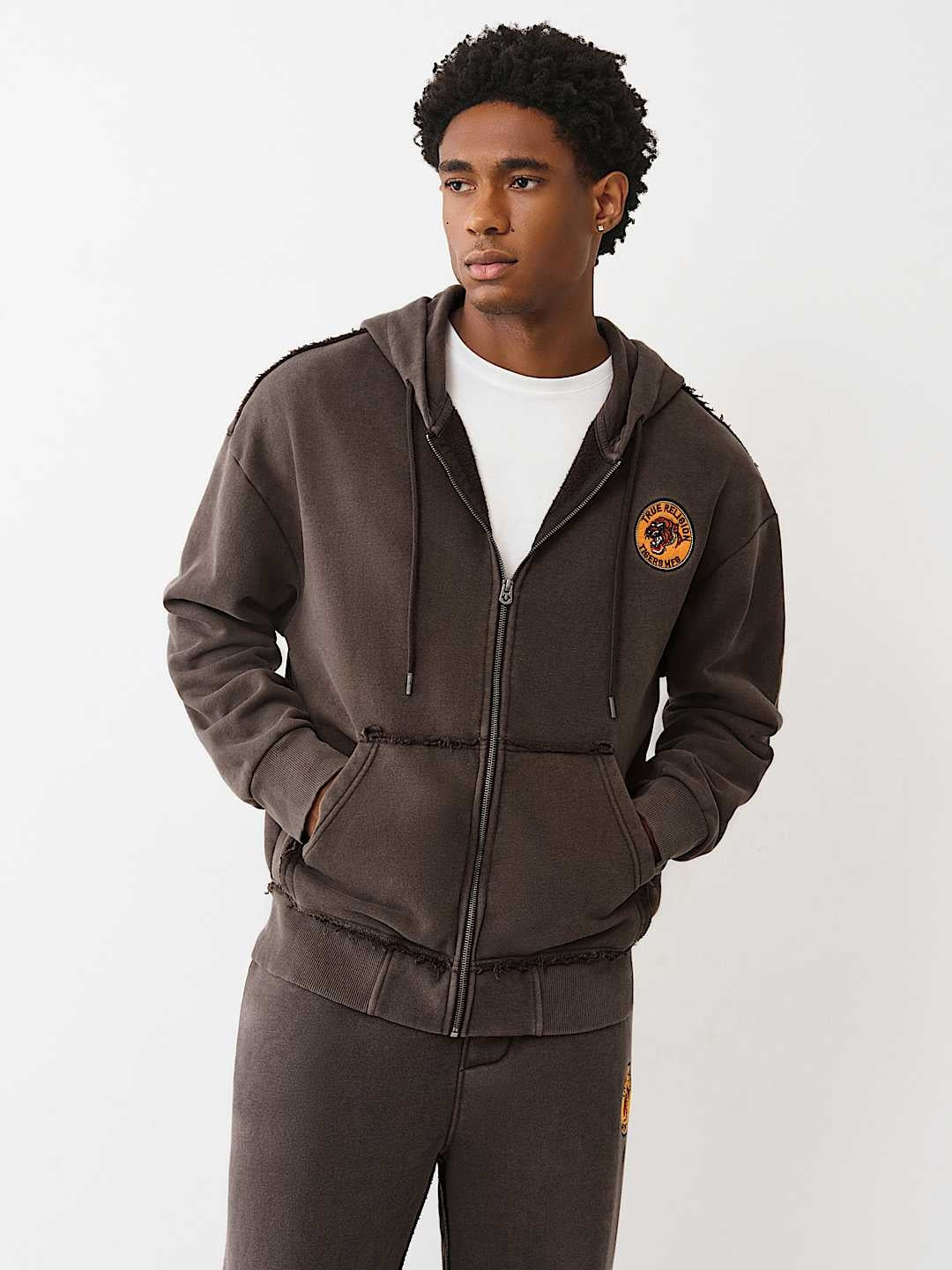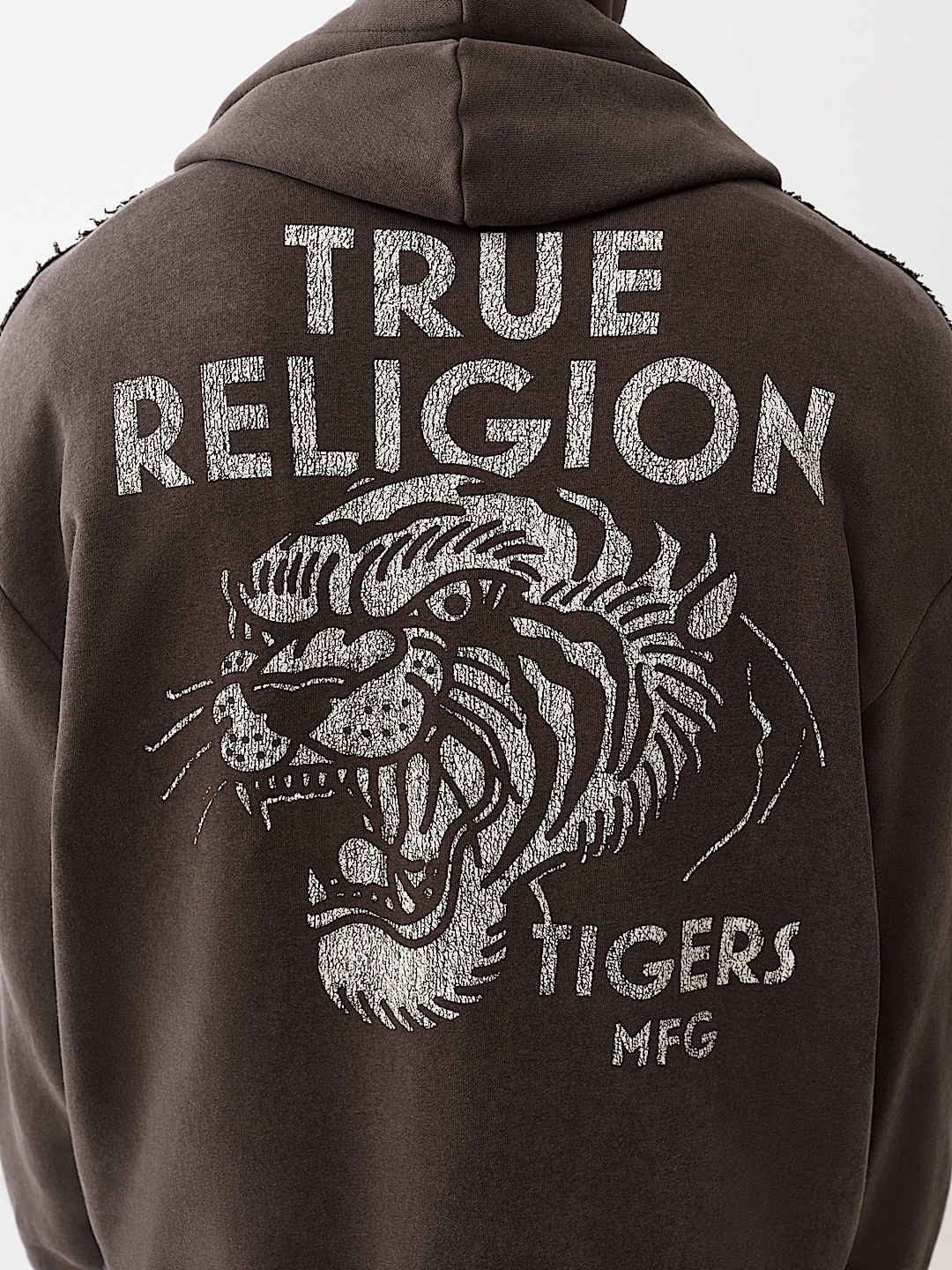 True Religion Hoodie Tiger Vintage Up Dark Brown