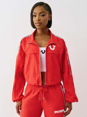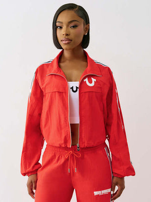 True Religion Shrunken Nylon Track Jacket Flame Scarlet