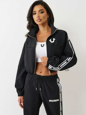 True Religion Shrunken Nylon Track Jacket Jet Black