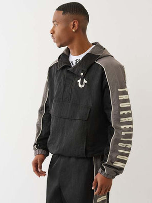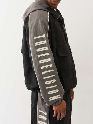 True Religion Color Block Windbreaker Jet Black-Granite Grey