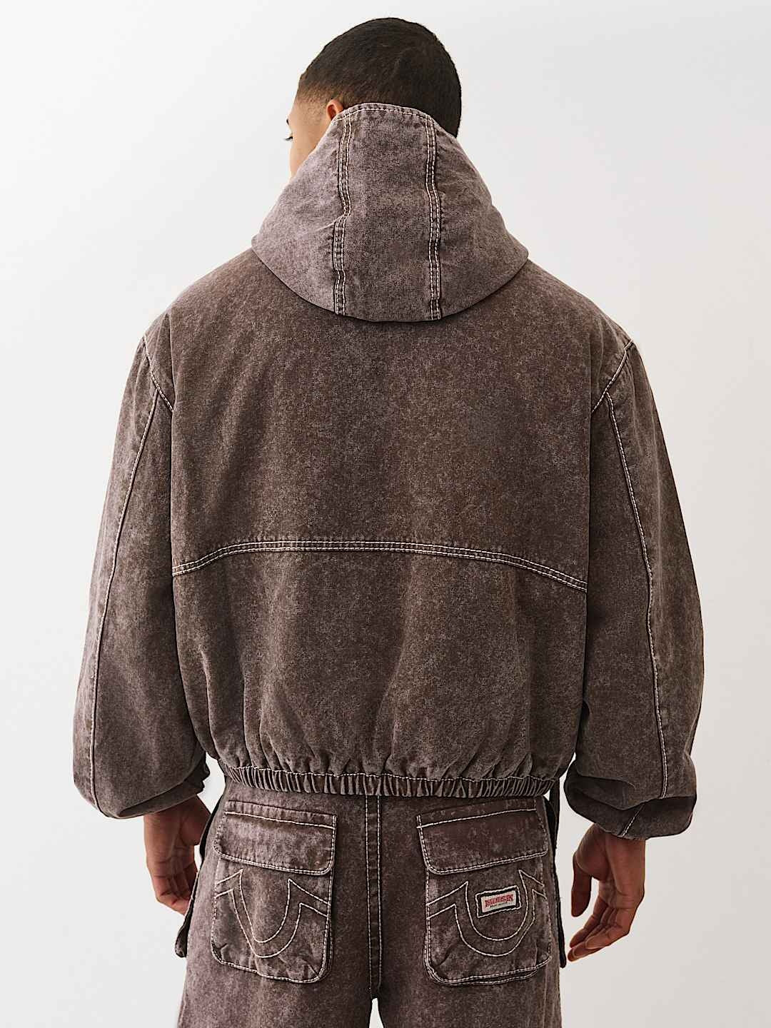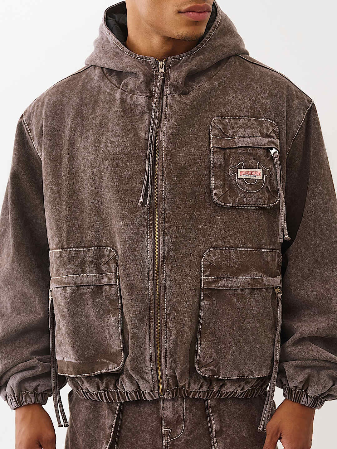 True Religion Jacket Big T Cinched Hooded Wrkwr Jkt Brown Acid Wash