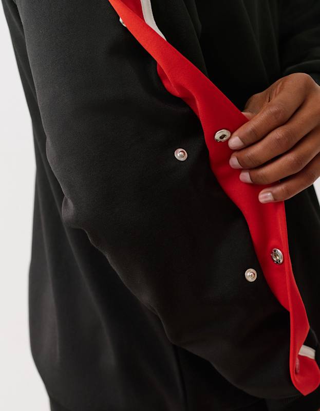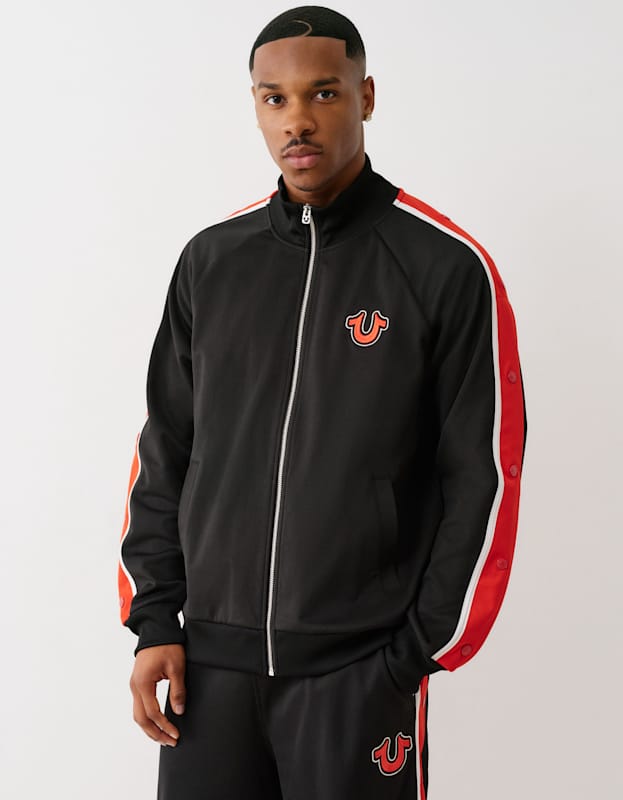 True Religion Snap Off Track Jacket Jet Black Engineered for versatility, this track jacket features a removable snap-off design that transforms your look in seconds. The jet black colorway delivers timeless sophistication, while premium construction ensures durability through seasons of wear. Perfect for layering over casual basics or pairing with track pants for a cohesive streetwear aesthetic. The snap detailing adds functional edge to an essential wardrobe piece that bridges athletic and contemporary style. Elevate your rotation with a jacket that adapts to your lifestyle.