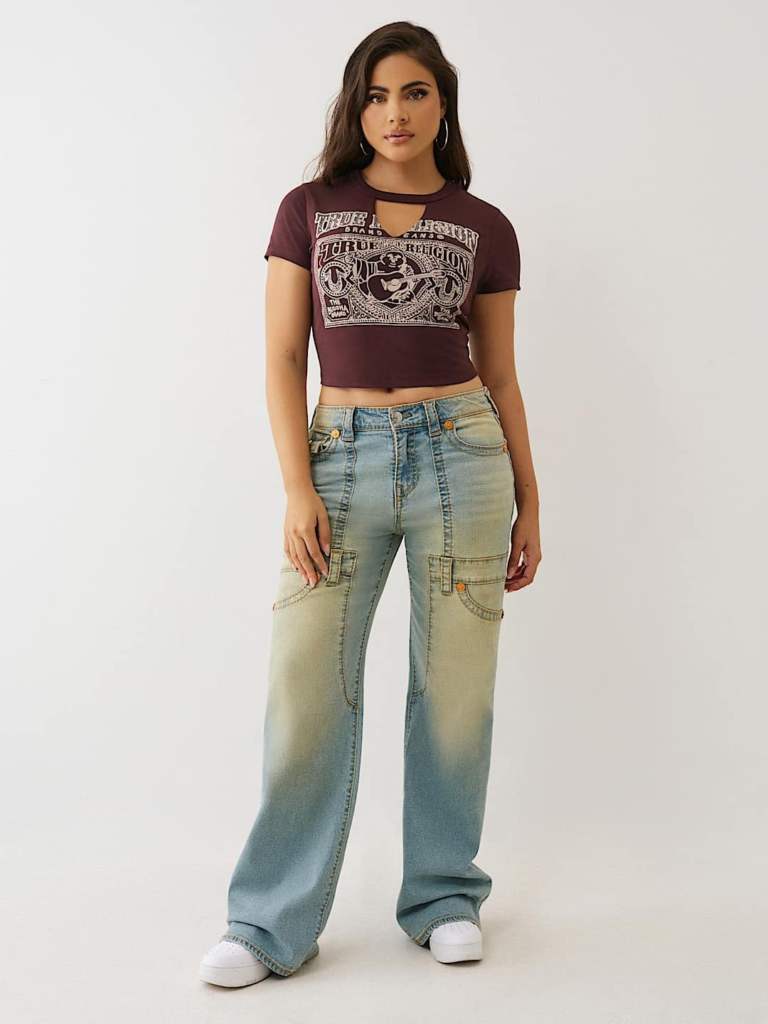True Religion T-Shirt Crystal Buddha Keyhole Ss Bby T Fudge