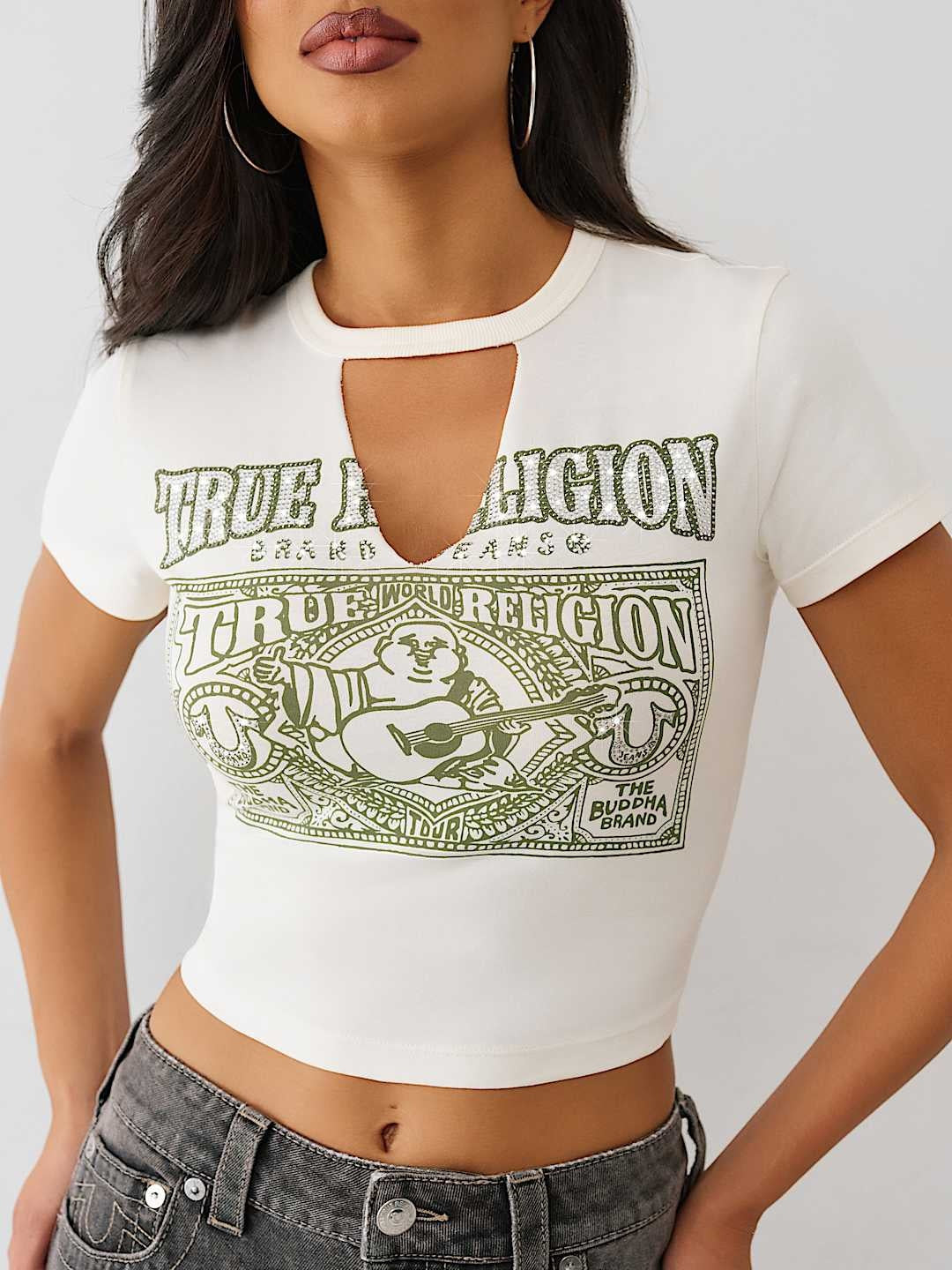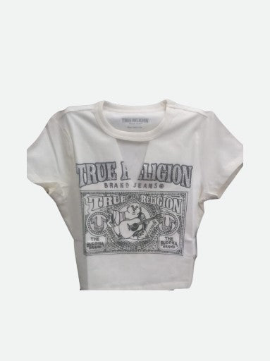 True Religion T-Shirt Crystal Buddha Keyhole Ss Bby T Winter White