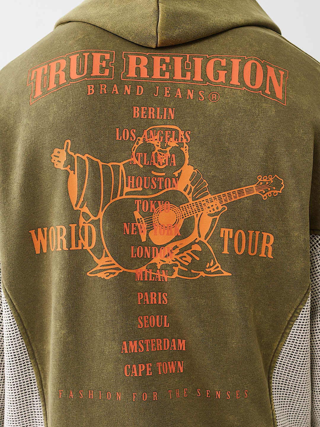 Elevate your casual wardrobe with this striking True Religion hoodie that seamlessly blends style and comfort. Featuring a distinctive mesh inset design, this piece delivers visual interest while the rust and kalamata colorway creates an effortlessly sophisticated look. The cinched silhouette flatters your frame, offering a modern fit that works whether you're layering for warmth or making a standalone statement. Crafted with True Religion's signature quality, this hoodie pairs perfectly with your everyday essentials while adding that coveted designer edge to any outfit.