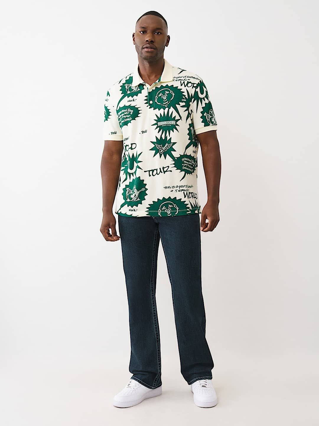 Elevate your casual wardrobe with this True Religion Polo in a striking all-over print design. Crafted from premium pique fabric, this short-sleeve polo delivers comfort and durability for everyday wear. The sandstorm colorway offers versatile styling options, seamlessly transitioning from weekend relaxation to smart-casual occasions. Featuring the iconic True Religion branding, this piece combines quality construction with contemporary flair. Perfect for those who appreciate refined basics with personality.