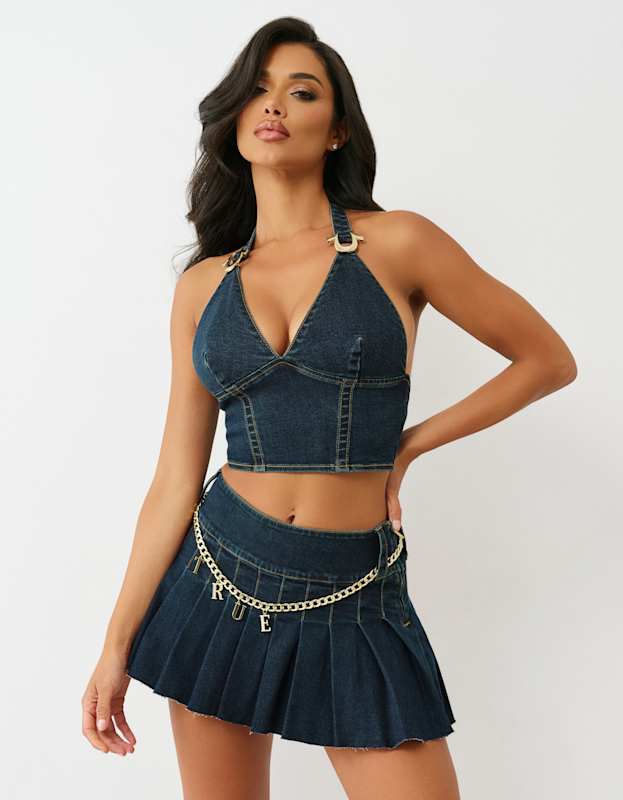 True Religion Denim Hs Halter Top Indigo Twilight Elevate your denim game with this striking halter top from True Religion. Crafted in rich indigo twilight denim, this piece combines classic denim heritage with contemporary edge. The halter neckline creates a flattering silhouette while the premium fabric ensures lasting durability and comfort. Perfect for layering or wearing solo, this versatile top transitions effortlessly from casual daywear to evening looks. A wardrobe essential that delivers both style and substance.