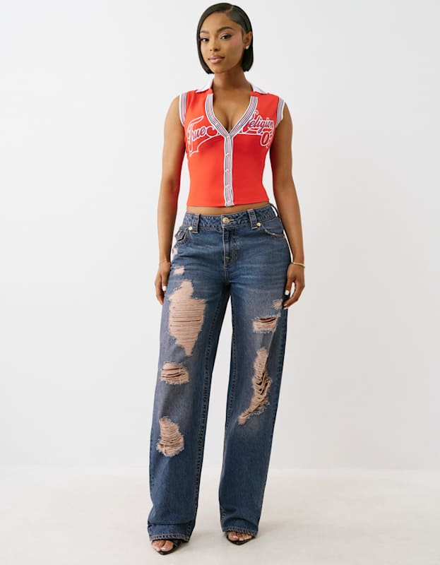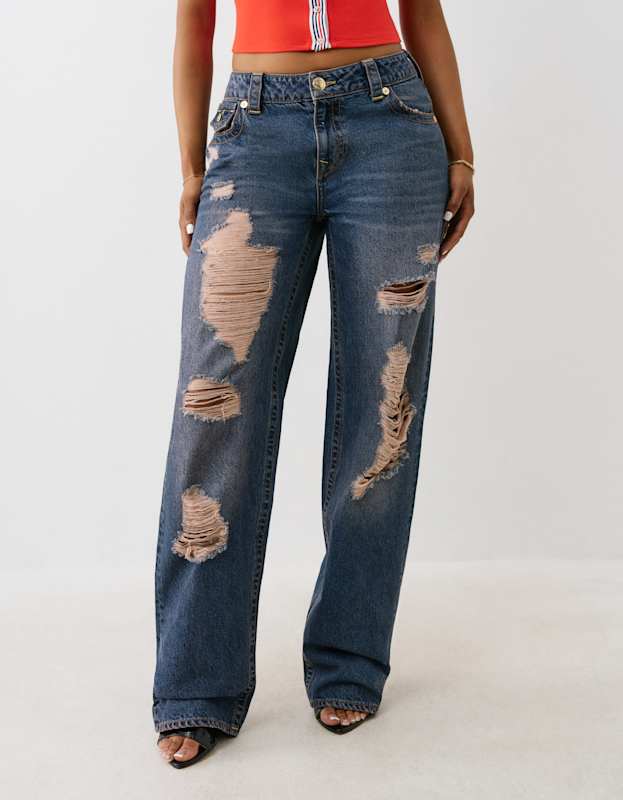 Effortless style meets timeless denim craftsmanship with the True Religion Relaxed Straight Mr Flap Breeze in Aqua. This versatile pair features a comfortable relaxed fit through the hip and thigh, tapering subtly at the ankle for a refined silhouette. The signature Mr Flap back pocket design adds authentic True Religion heritage, while the crisp aqua wash brings fresh, contemporary appeal to your everyday rotation. Perfect for layering or wearing solo, these jeans transition seamlessly from casual weekends to elevated streetwear looks. Built for durability and comfort, they're an investment piece that anchors any wardrobe.