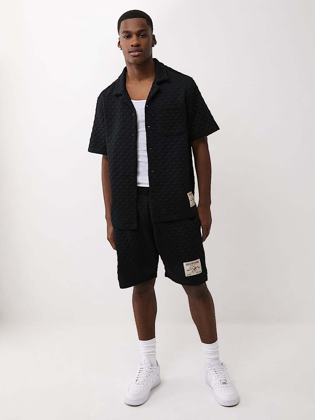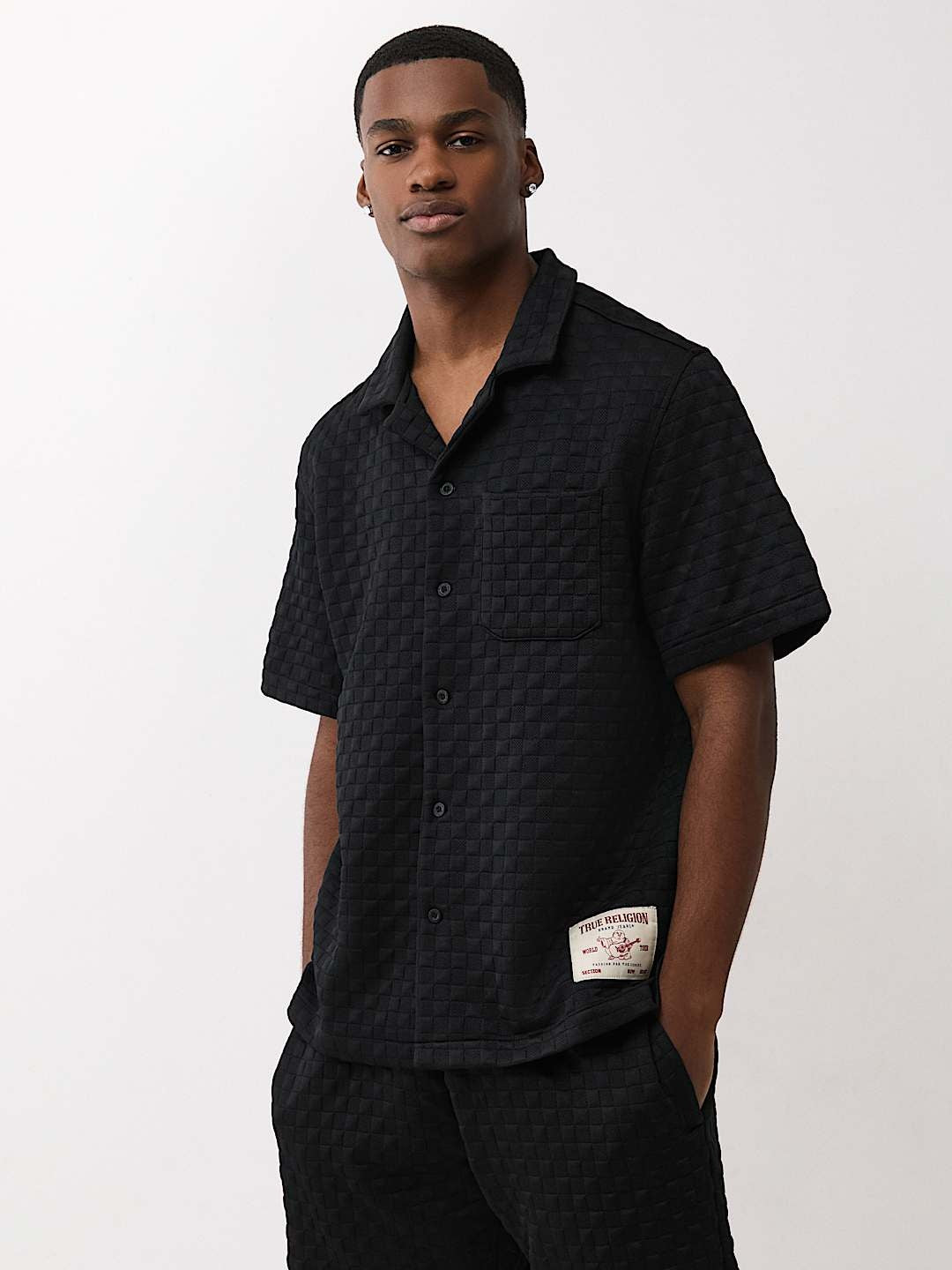 Made from high-quality materials, this shirt ensures breathability and durability, keeping you comfortable throughout the day. The jet black base color paired with the checkered pattern offers versatility, allowing you to easily pair it with jeans, chinos, or shorts for a polished appearance. Whether you're heading to a weekend brunch or an evening gathering, this True Religion shirt provides effortless style that stands out without trying too hard.