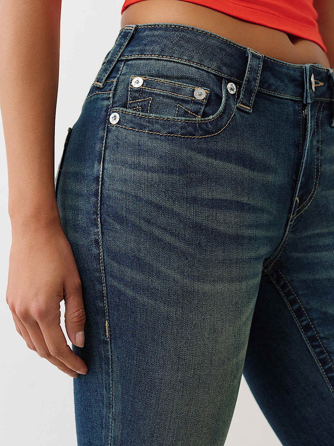Elevate your denim collection with the True Religion Becca Mid Rise Bootcut in Nautical Blue. This timeless silhouette combines a flattering mid-rise fit with a classic bootcut leg that elongates and defines your frame. The rich nautical blue hue offers versatile styling options, seamlessly transitioning from casual weekends to polished weekday looks. Crafted with True Religion's signature quality and attention to detail, these jeans deliver the perfect balance of comfort and style. A wardrobe essential that works as hard as you do.