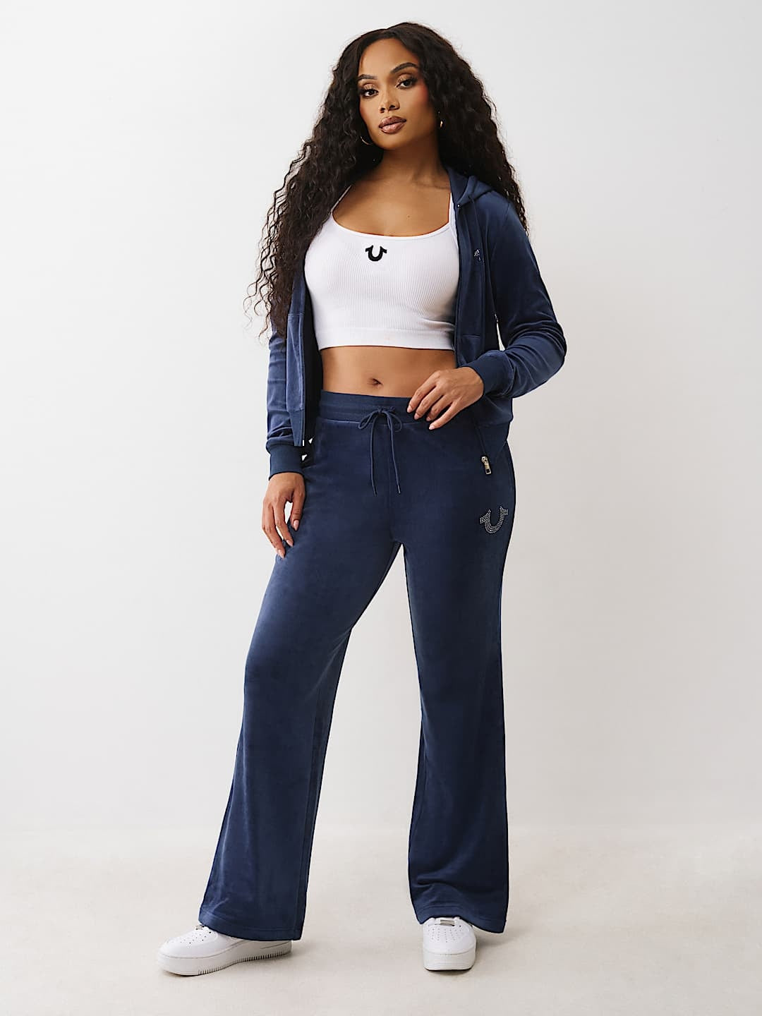 Elevate your loungewear game with these True Religion Horseshoe Velour Sweatpants in striking Jet Blue. Crafted from luxuriously soft velour fabric, these sweatpants deliver comfort without compromising on style. The iconic horseshoe embroidery adds that signature True Religion flair, making them instantly recognizable. Perfect for relaxed days at home or casual outings, they pair effortlessly with your favorite tee or hoodie. The relaxed fit ensures all-day comfort while the rich Jet Blue hue complements any wardrobe. Experience the perfect blend of heritage brand prestige and everyday wearability.