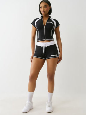 True Religion Crystal Lips Velour Hot Shorts Jet Black