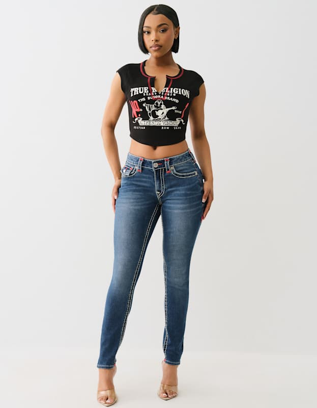 True Religion Jennie Mr Skinny Flap Sup T Royal Indigo Elevate your denim game with the iconic Jennie Mr Skinny silhouette in rich Royal Indigo. This True Religion classic delivers the perfect balance of premium fit and timeless style—engineered for those who demand quality that lasts. The signature flap pocket detailing and tailored cut create a flattering, refined look that transitions seamlessly from casual to elevated. Built with True Religion's heritage craftsmanship, this indigo wash develops character with every wear, making it an investment piece that only gets better. A wardrobe essential for denim enthusiasts who refuse to compromise on authenticity or fit.