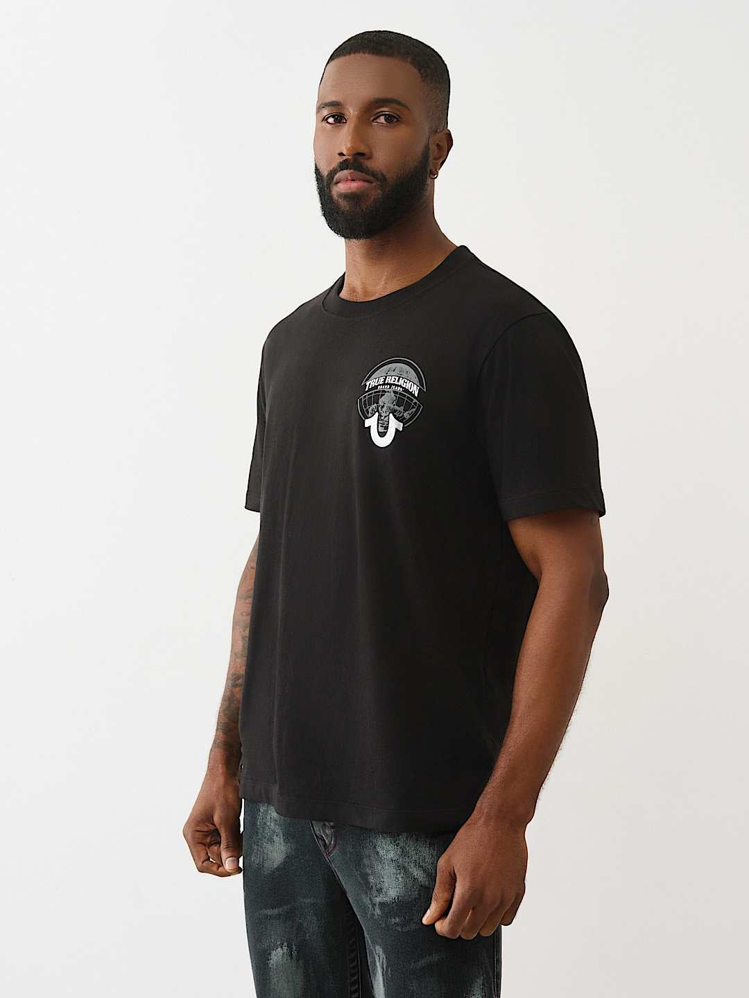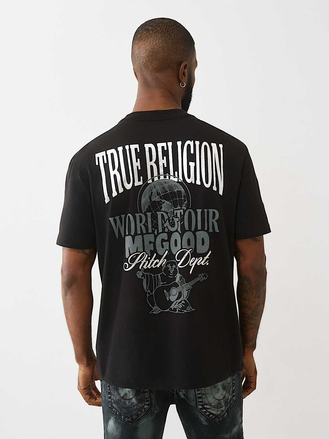 Designed with True Religion’s signature attention to detail, the Globe graphic adds a unique touch that stands out without overwhelming your outfit. The short sleeves and classic fit ensure ease of movement, making it ideal for both everyday wear and weekend adventures. Whether you're heading out for a casual hangout or running errands, this t-shirt delivers a polished yet relaxed vibe.
