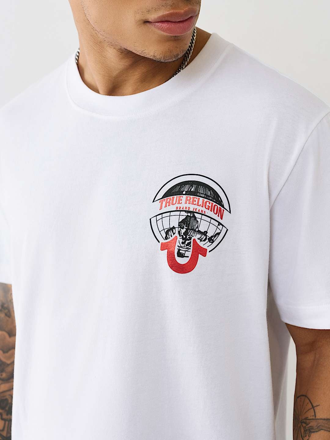 Elevate your basics with this timeless piece that embodies True Religion's commitment to quality and design. Easy to care for and incredibly versatile, the Optic White Globe T-Shirt is an essential addition for anyone looking to enhance their casual wardrobe with a subtle yet stylish statement.
