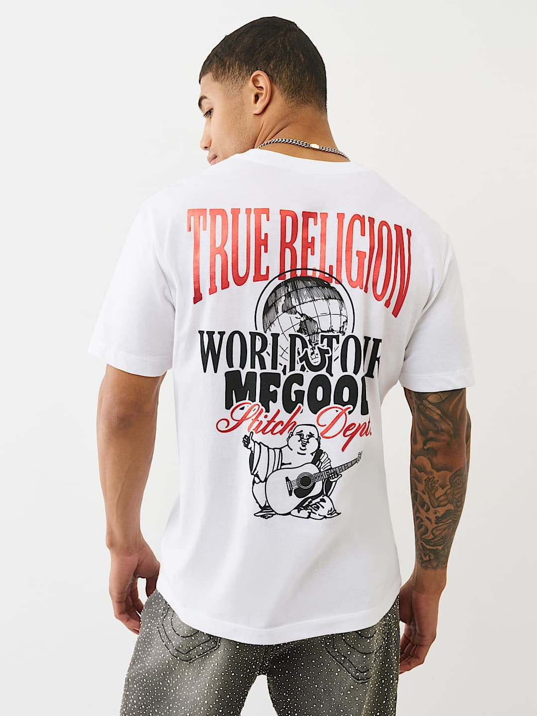 Designed for those who value both fashion and function, this short-sleeve t-shirt features a tailored fit that flatters all body types while allowing freedom of movement. Durable stitching and high-quality materials ensure lasting wear, making it a reliable staple in your wardrobe season after season. Whether you're dressing up for a casual outing or relaxing on the weekend, the True Religion Globe T-Shirt delivers a perfect balance of modern style and comfort.
