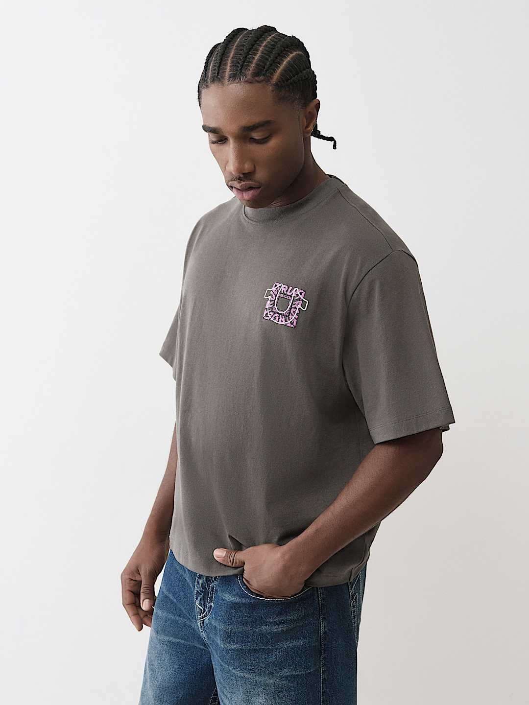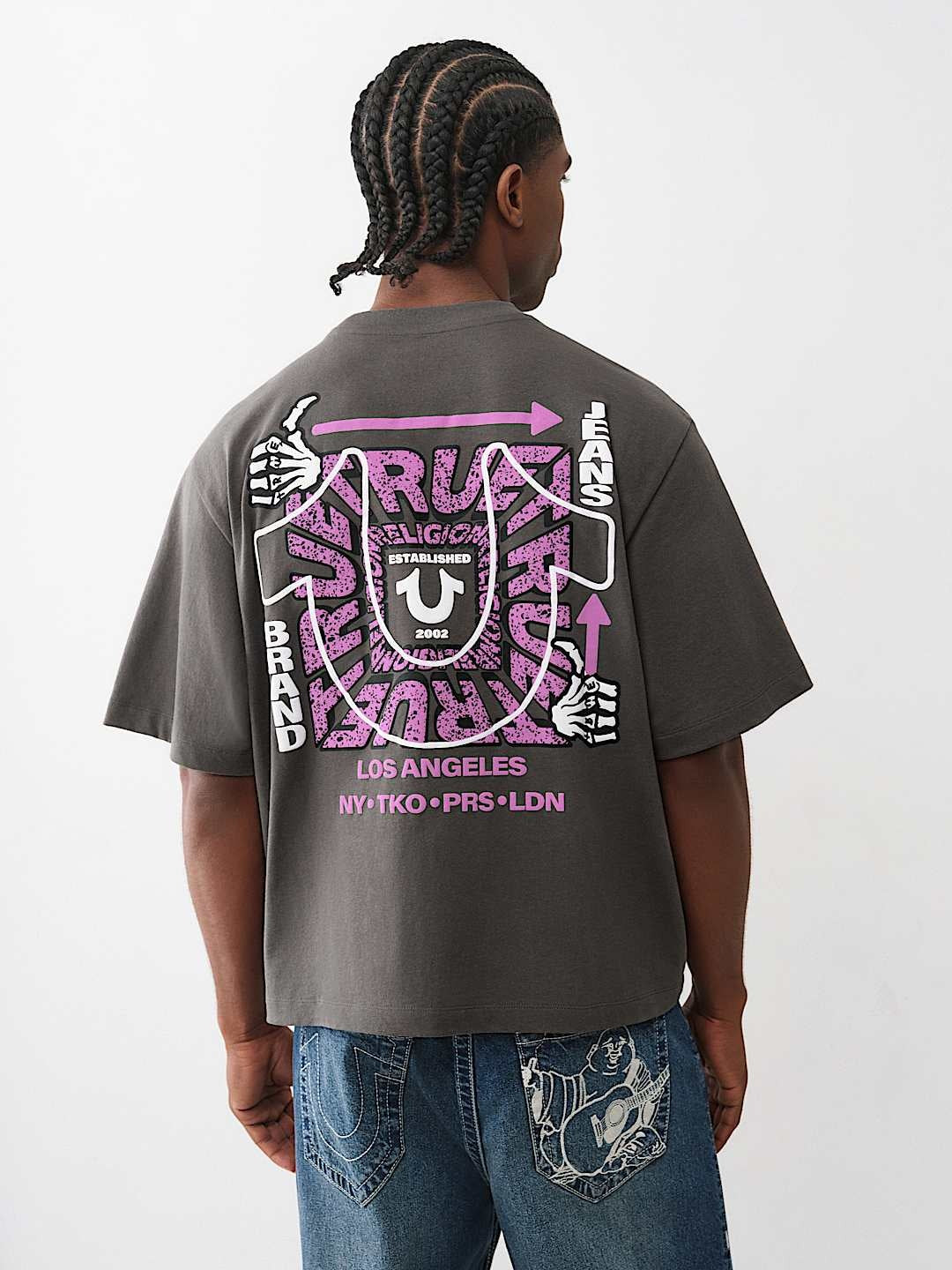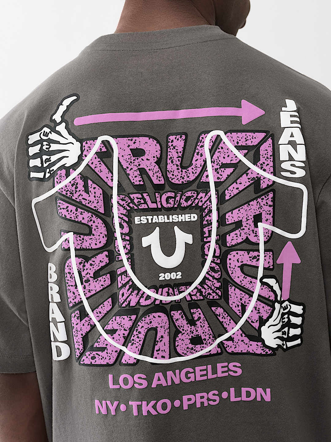 True Religion T-Shirt Thumbs Up Boxy Granite Grey
