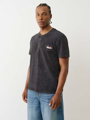 True Religion Ss Pique Mineral Patch Henley Jet Black