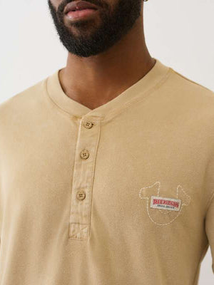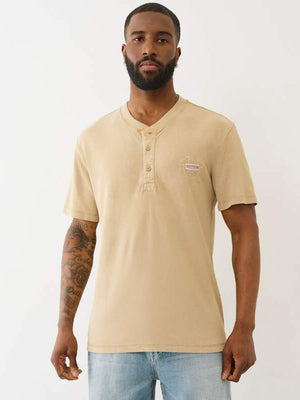True Religion Ss Pique Mineral Patch Henley Travertine
