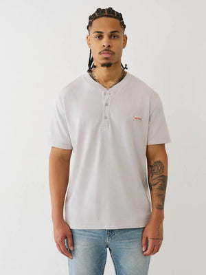 True Religion Ss Pique Mineral Patch Henley Quiet Grey