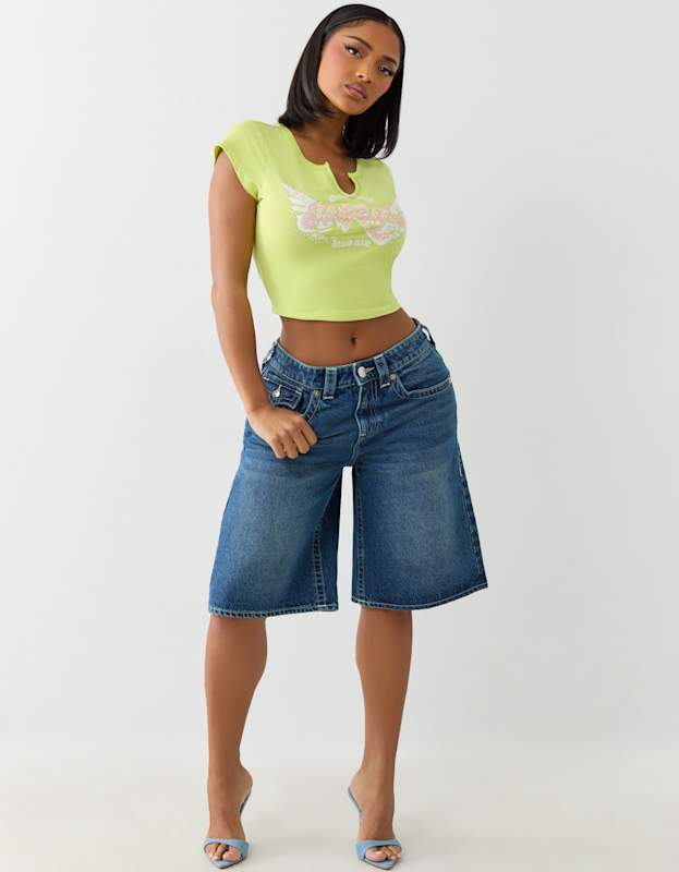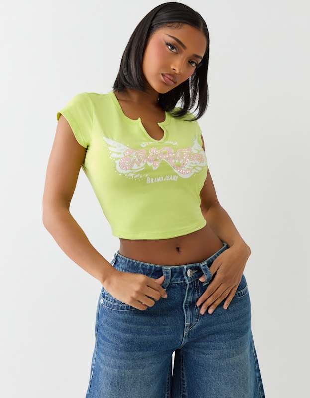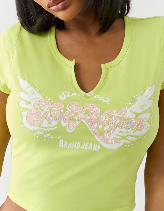 True Religion Crystal Wing V Notch Tee Daiquiri Green