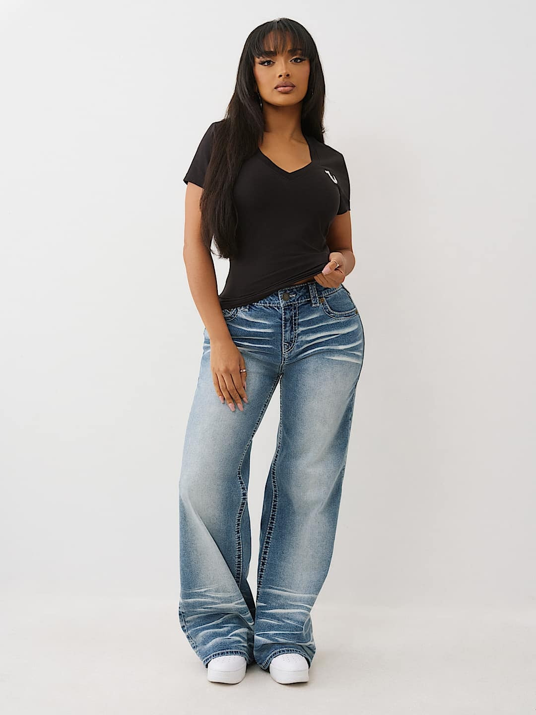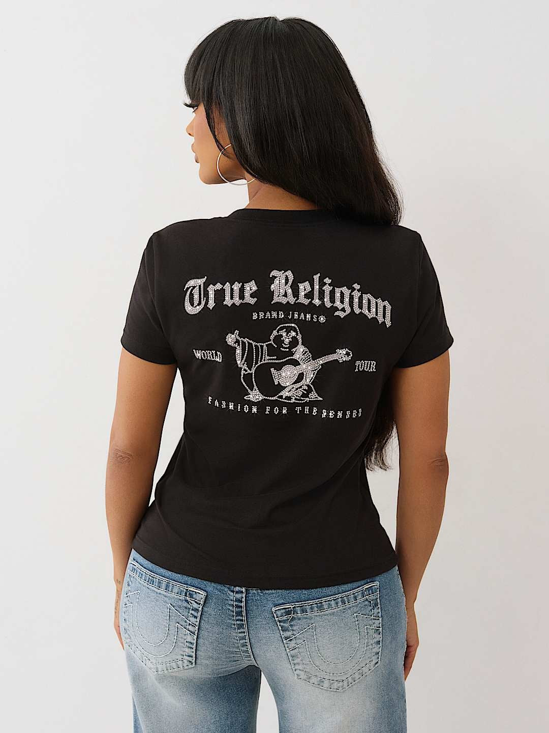 True Religion T-Shirt Crystal Buddha V Neck Ss Jet Black
