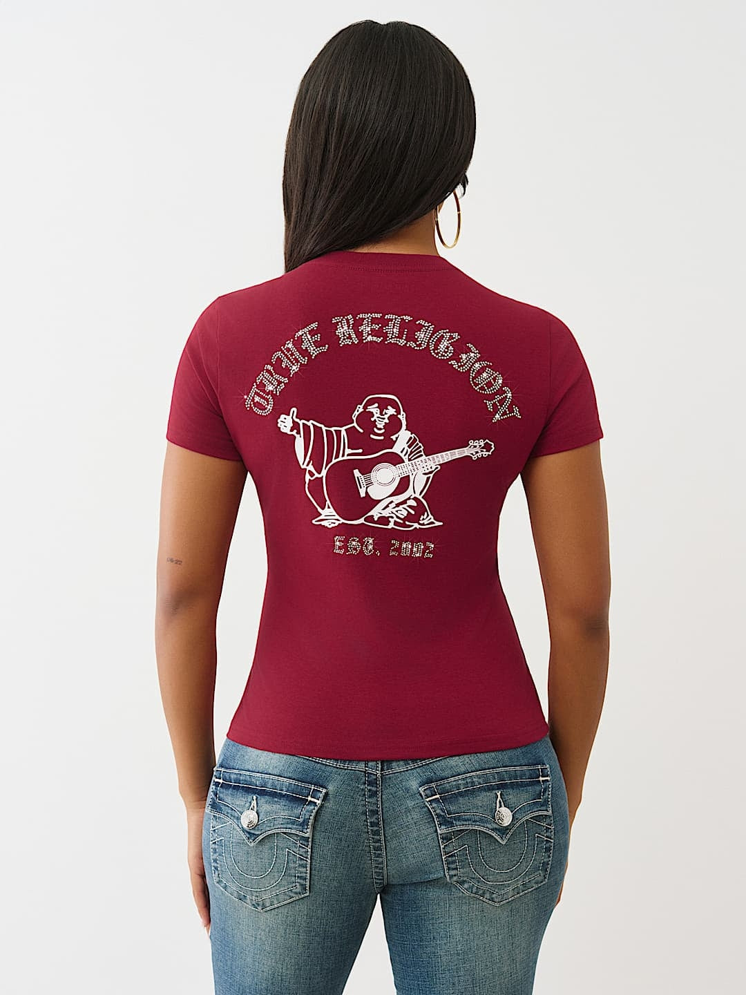 True Religion T-Shirt Crystal Crew Neck Rhubarb Red