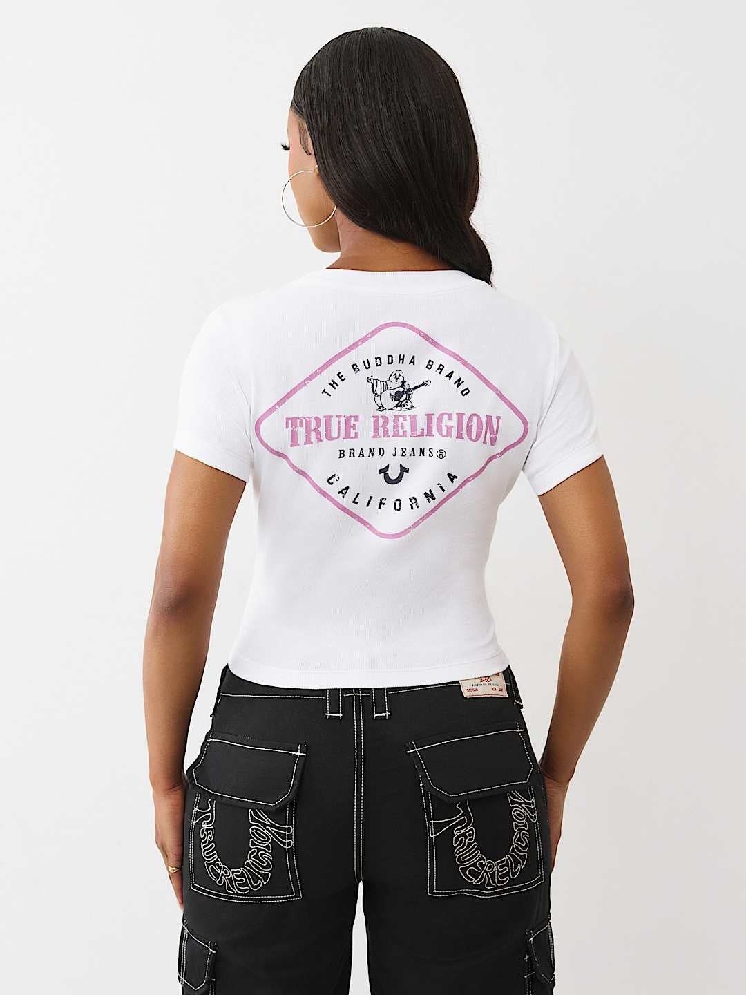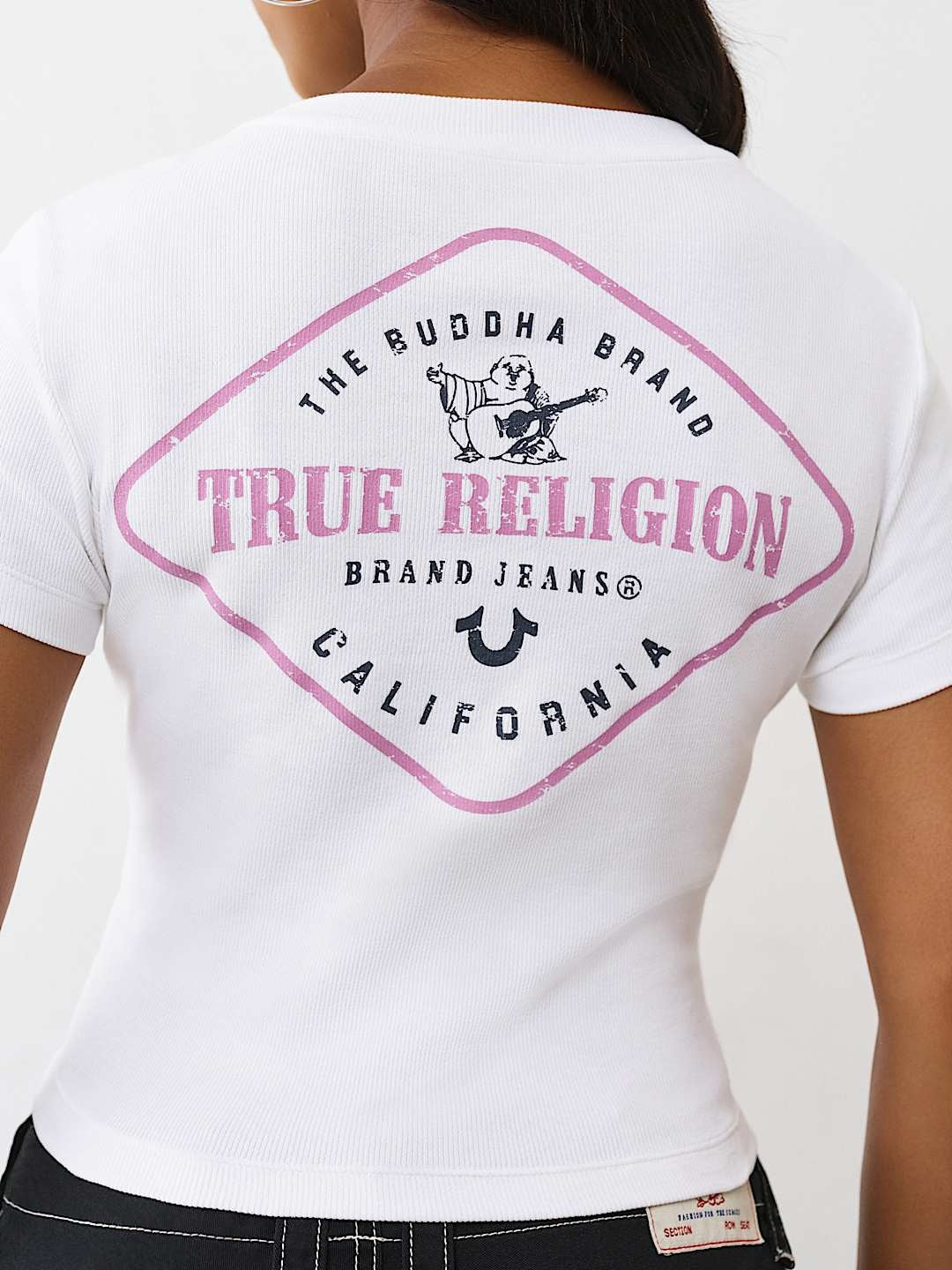 True Religion T-Shirt Distressed Rib Bb Optic White