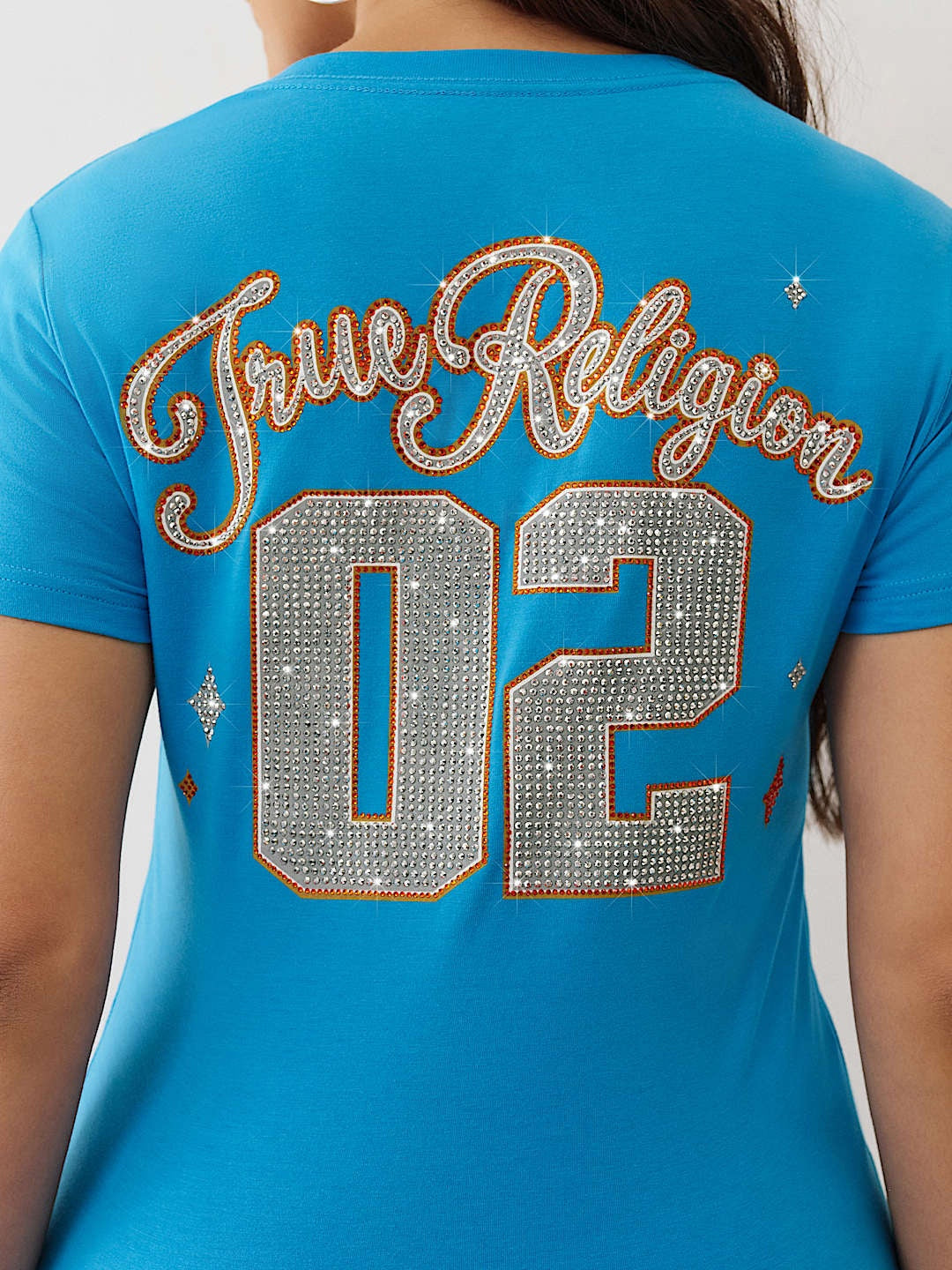 True Religion T-Shirt Sporty Crystal V Neck Blithe