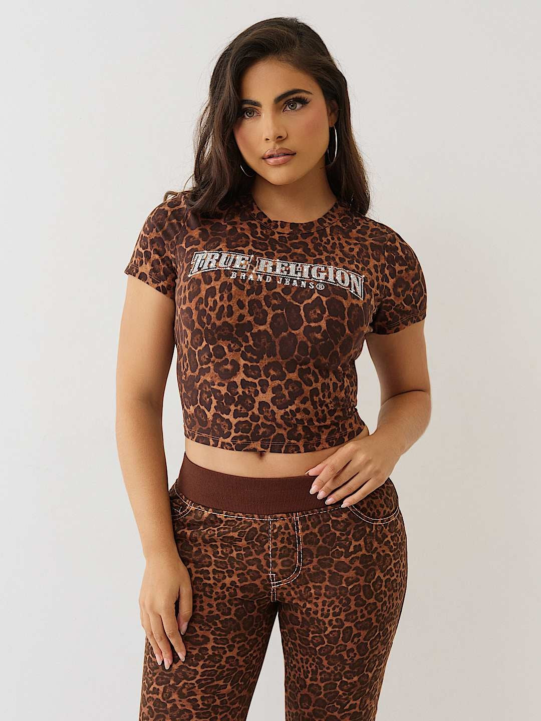 True Religion T-Shirts Crystals Ss Baby Leopard