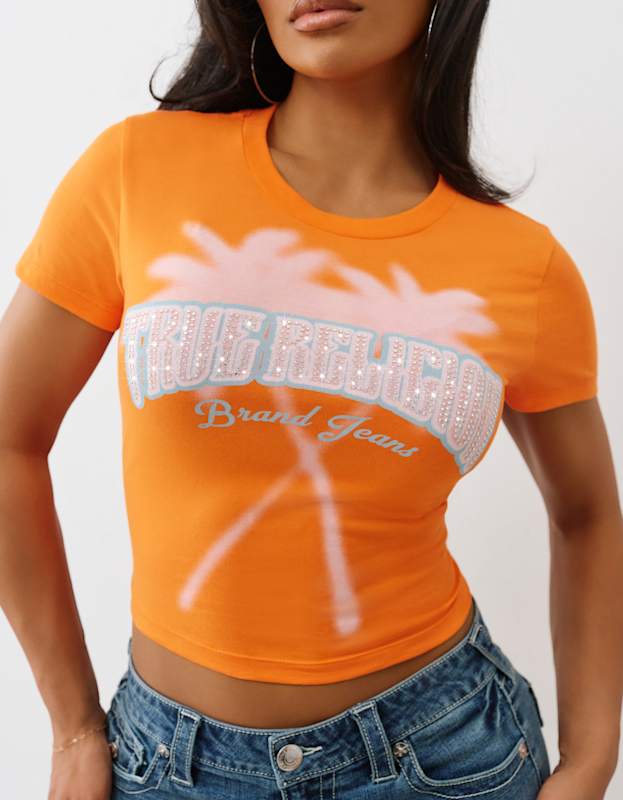 True Religion Tr Palm Tree Baby Tee Exotic Orange