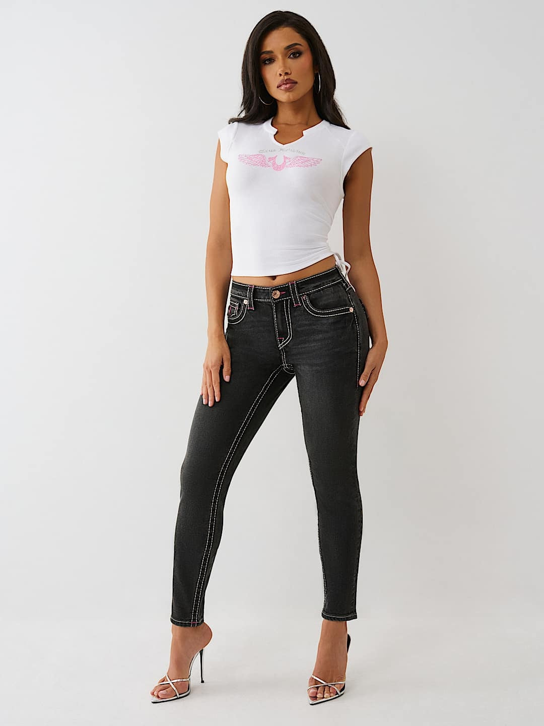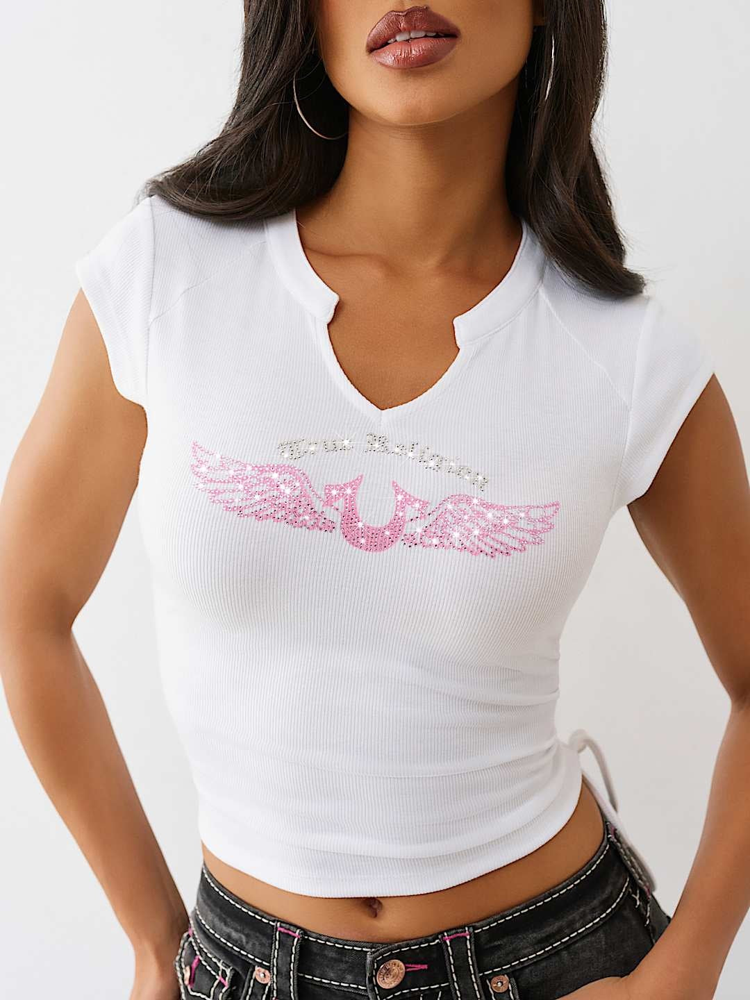 True Religion Crystal V Notch Side Ruch Top Optic White