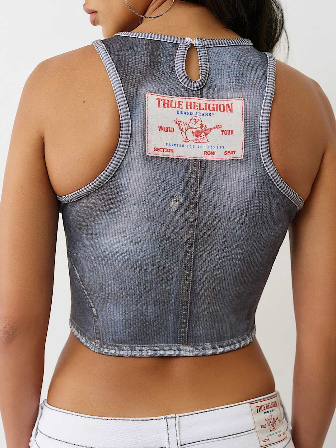 Elevate your casual wardrobe with this striking True Religion Indigo Terry Halter Top Print. Crafted from soft, breathable terry fabric, this halter-style top delivers comfort without compromising on style. The eye-catching print adds personality to any outfit, while the classic indigo hue ensures effortless versatility. Perfect for layering or wearing solo, this piece transitions seamlessly from weekend lounging to casual outings. Experience the perfect blend of comfort and contemporary design that True Religion is known for.