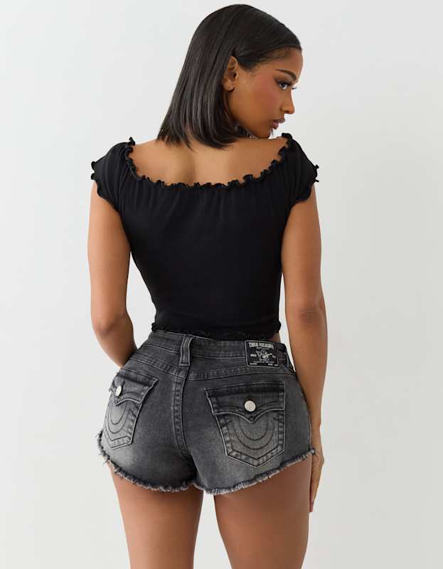 True Religion Lettuce Hem Off Shoulder Top Jet Black