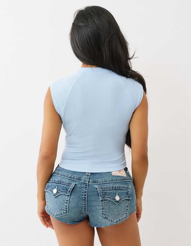 True Religion Sporty Ss Raglan Ribbed Top Cerulean Blue